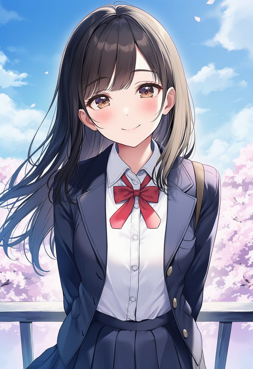 黒髪清楚女子春桜と一緒に記念撮影71305sakurada2025年9月21日公共, 春, 桜, 野外 春風に揺れる桜の下、黒髪の清楚な女子が優しく微笑む。柔らかな日差しと舞い散る花びらが、まるで青春の一瞬を切り取ったような光景を描き出す。淡い空の青と桜のピンクが重なり、季節の温もりを感じさせる一枚。見ているだけで心が穏やかになる、春らしい癒やしのイラストです。 関連記事 美少女×スイーツイラスト いちごパフェを楽しむ可愛いワンピース 女の子 24370 2025年9月22日 うさぎのぬいぐるみを抱きしめるピンク系パーカーの女の子まとめ 86941 2025年9月22日 ツインテールが可愛い!ピンク衣装のアイドルイラスト特集 51702 2025年9月22日 小悪魔系ツインテール紫髪女子まとめ 38026 2025年9月21日 夏の放課後を描いたセーラー服女子のイラスト28461 2025年9月21日